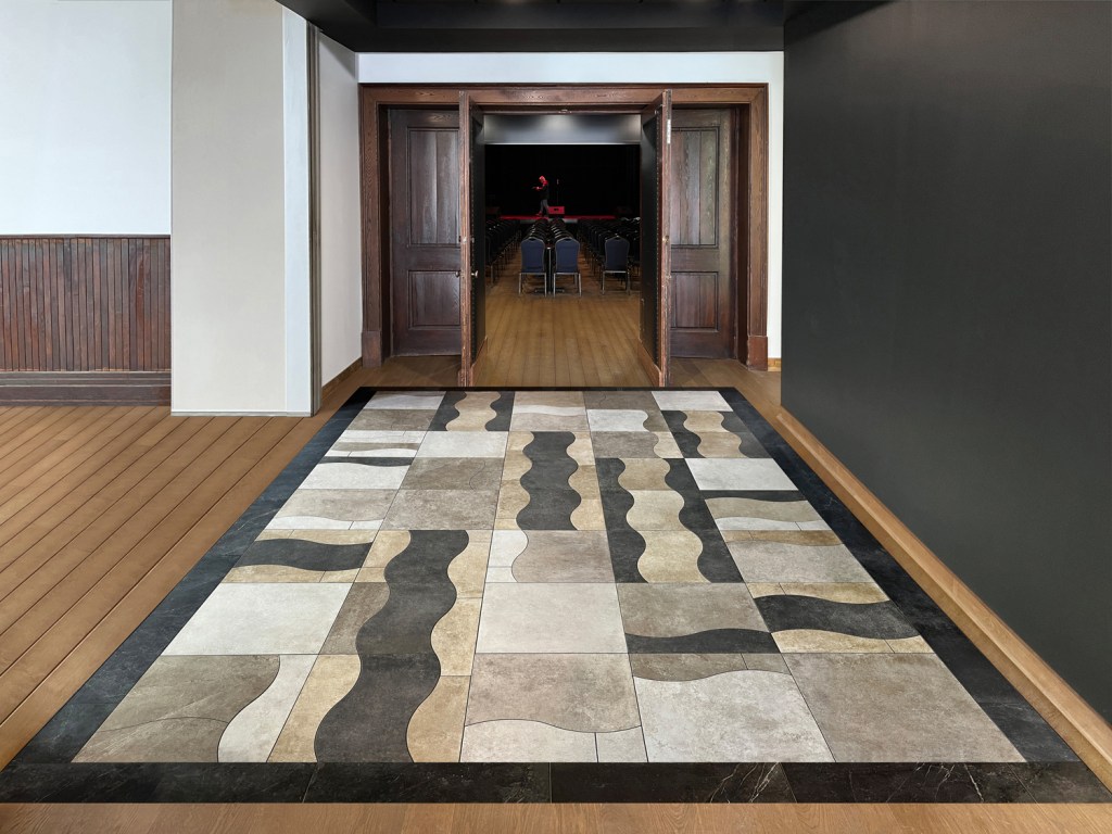 ”Les Ondes” – Oeuvre d’intégration au plancher du Hall d’entrée de la salle de spectacle 2024
